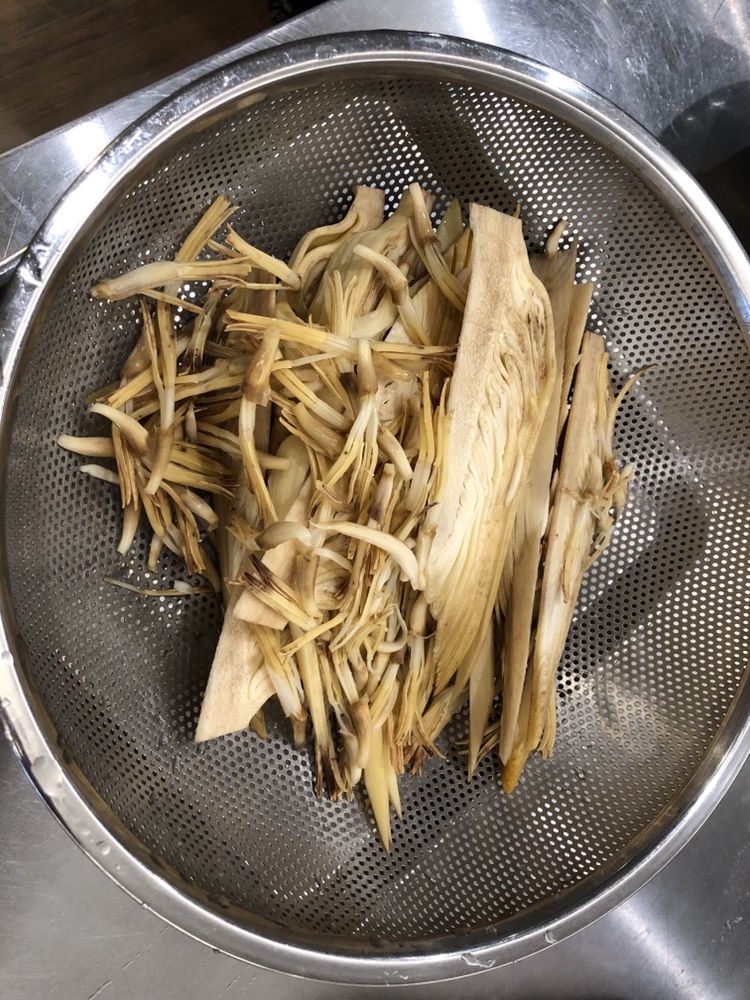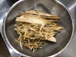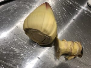 アクがあるので2時間ほど酢水に漬けあく抜きをします。