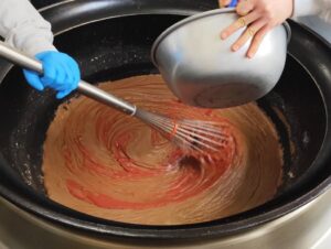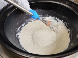 令和8年度より、名古屋市の学校給食のルウに使用する食材が小麦粉から米粉に変わります。米粉で調理した場合、小麦粉とどう違ってくるのか、600食分のルウを試作することにしました。